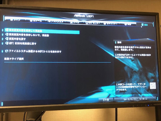 我が家でもいそいそと再接続して電源オン…やっぱり映らん、どういうことや…とスマホでいろいろ調べていたら、いつの間にかUEFI画面映ってました…よかった…。
